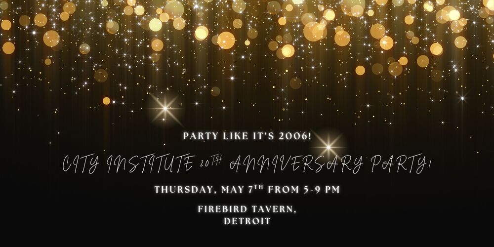 Join the City Institute community as we party like it's 2006 on Thursday, May 7 at Firebird Tavern from 5-9 PM. This is a special reunion event to celebrate our community getting stuff done for Detroit for 20+ years. Your ticket includes appetizers, one drink ticket, music and lots of fun. Please join us and bring a friend!